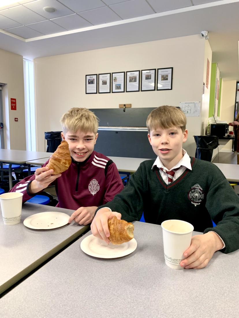 French students enjoying their petit-déjeuner français ce matin.