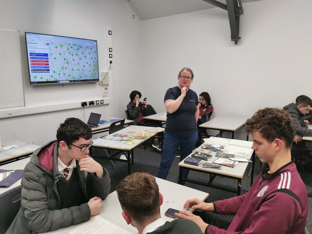 We welcome Una Halpin back to CBS Kilkenny for a second visit as part of the Heritage in Schools TY Pilot Project, run in partnership with Wildways Adventures. This program, supported by the Heritage Council, provides Transition Year students with a unique opportunity to explore Ireland’s cultural, natural, and built heritage.