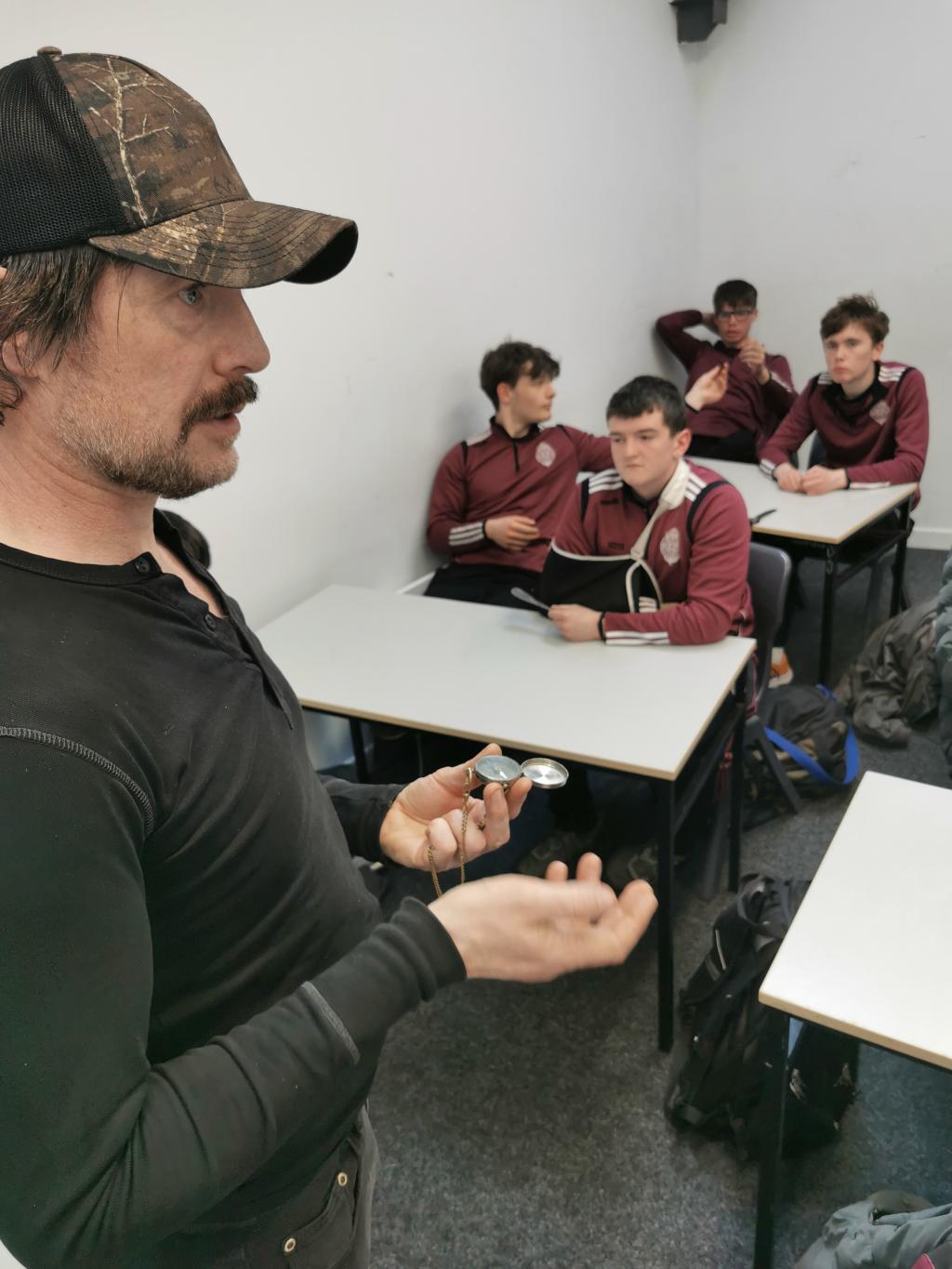 We were delighted to welcome back heritage expert Mr. Dave Swift to our TY Local History students for an immersive session on the Irish War of Independence.Mr. Swift presented and discussed historical artefacts and film replica gear, providing students with a tangible connection to this crucial period in Irish history.