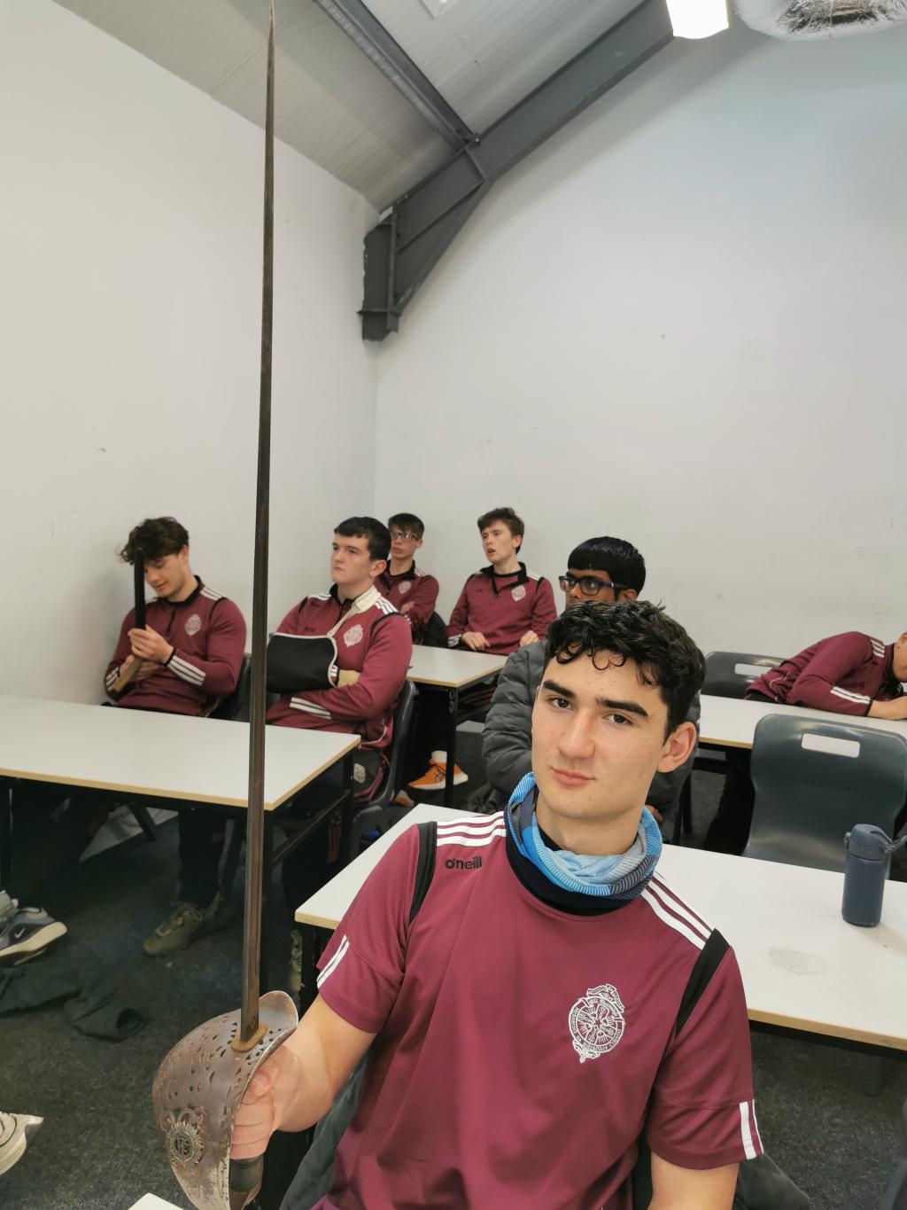 Mr. Swift presented and discussed historical artefacts and film replica gear, providing students with a tangible connection to this crucial period in Irish history.